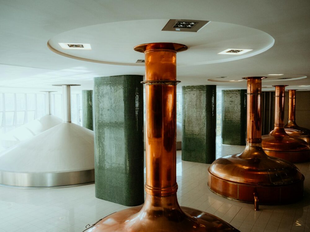 The guided visitor tour moves through the complete brewing process from raw materials — Bohemian malt, Žatec hops, and the soft local water — to the lagering tanks and bottling hall, with the historic Victorian brewery buildings preserved alongside the modern production infrastructure. The original sandstone cellars, used for lagering before mechanical refrigeration was available, are part of the tour route. The visit concludes with a tasting in the brewery pub, where Kozel Dark and Kozel Premium are served unpasteurised from the tank — a noticeably different product from the exported version. The brewery park, which includes a small open-air museum of historic brewing equipment, is pleasant before or after the tour.