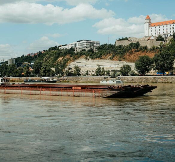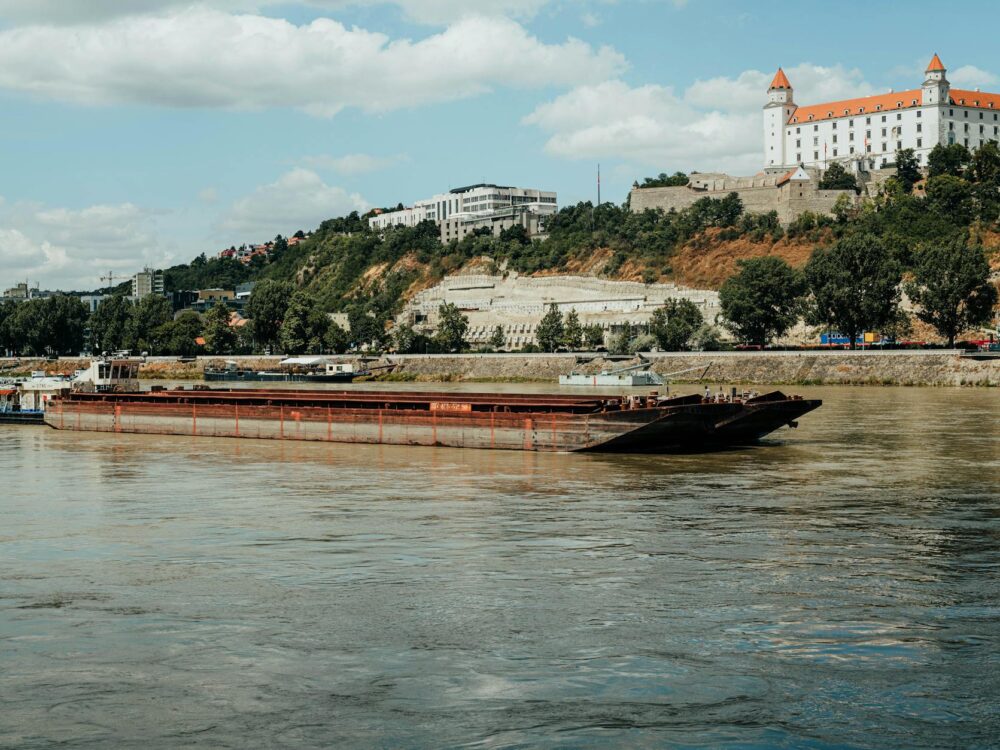 Bratislava surprises almost everyone on first encounter. After Vienna’s grandeur, the Slovakian capital’s compact old town — just a few pedestrianised streets radiating from the main square — feels almost village-like, and entirely charming. The old town is genuinely medieval in its bones: Hlavné námestie (Main Square), the Old Town Hall, and the narrow lanes toward the Danube retain their proportions and much of their character. Above it all, Bratislava Castle sits on a rocky promontory directly over the river — the four-towered ‘overturned table’ silhouette is the city’s defining image, and the views from the castle terrace across three countries (Slovakia, Austria, Hungary) on a clear day are remarkable. The UFO observation deck on the SNP Bridge offers a different perspective of the Danube, and the old town below is full of unexpected bronze statues — a leaning workman, a photographer emerging from a manhole, a French soldier — that appear at odd corners and invite you to slow down.